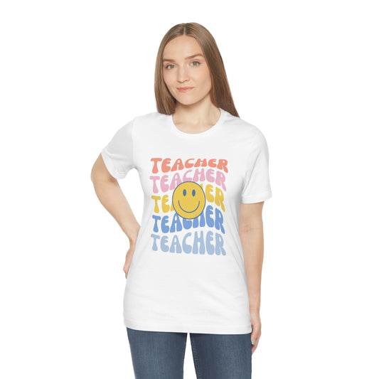 Happy Teacher Pastel Retro Print Unisex Jersey Short Sleeve Tee