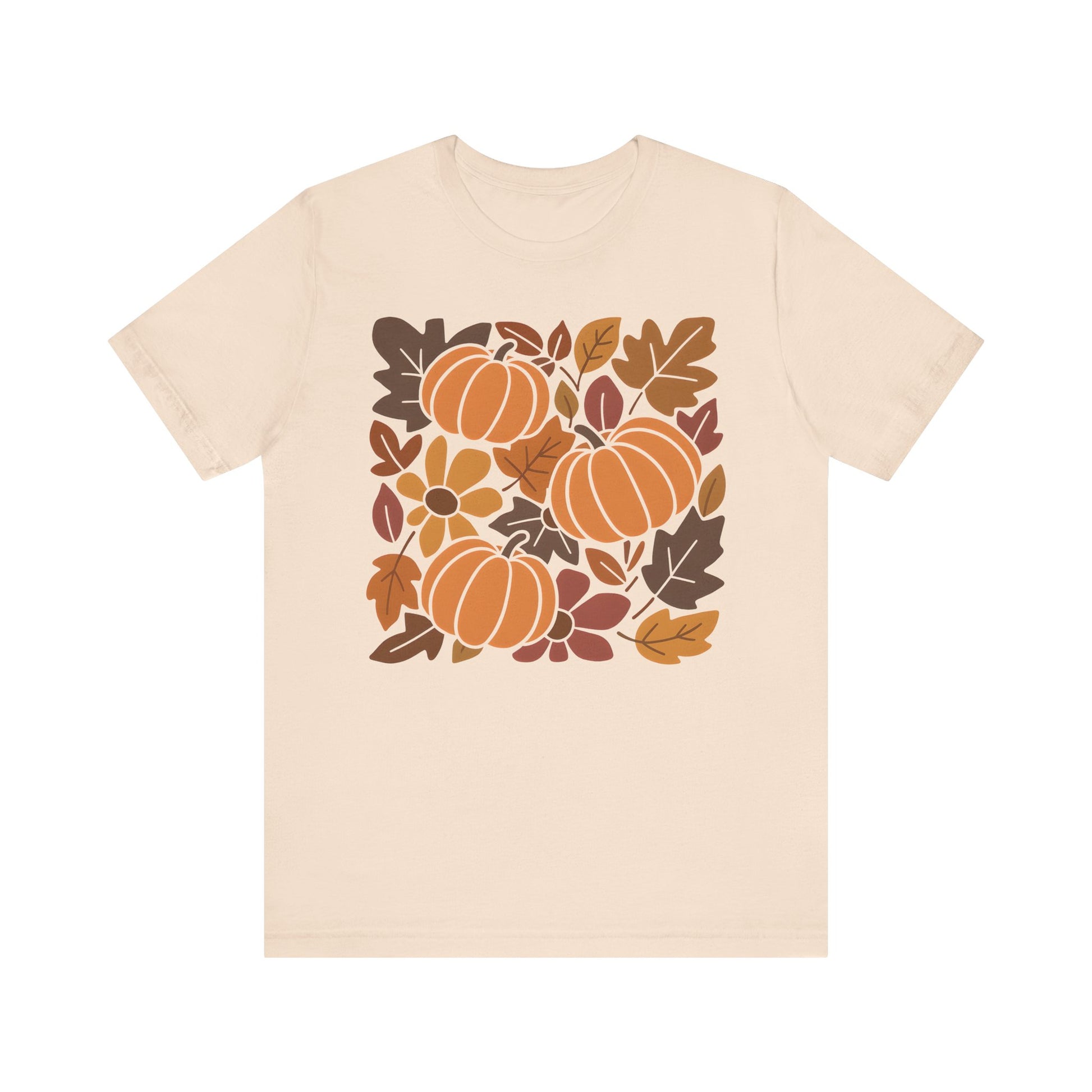 Embrace autumn vibes with this stylish Unisex Jersey Short Sleeve Tee. Its vibrant pumpkin and leaf design adds a cheerful touch to your wardrobe, perfect for cozy gatherings or casual outings. This tee resonates with individuals who appreciate comfort and style, making it an ideal fit for both young adults and anyone who loves to express their seasonal spirit. Whether you're heading to a pumpkin patch, celebrating Thanksgiving, or simply enjoying a crisp day outdoors, this tee provides effortless style and comfort. Ideal for gifting during the fall season, it’s a must-have for those who cherish the warmth and nostalgia of autumn celebrations.