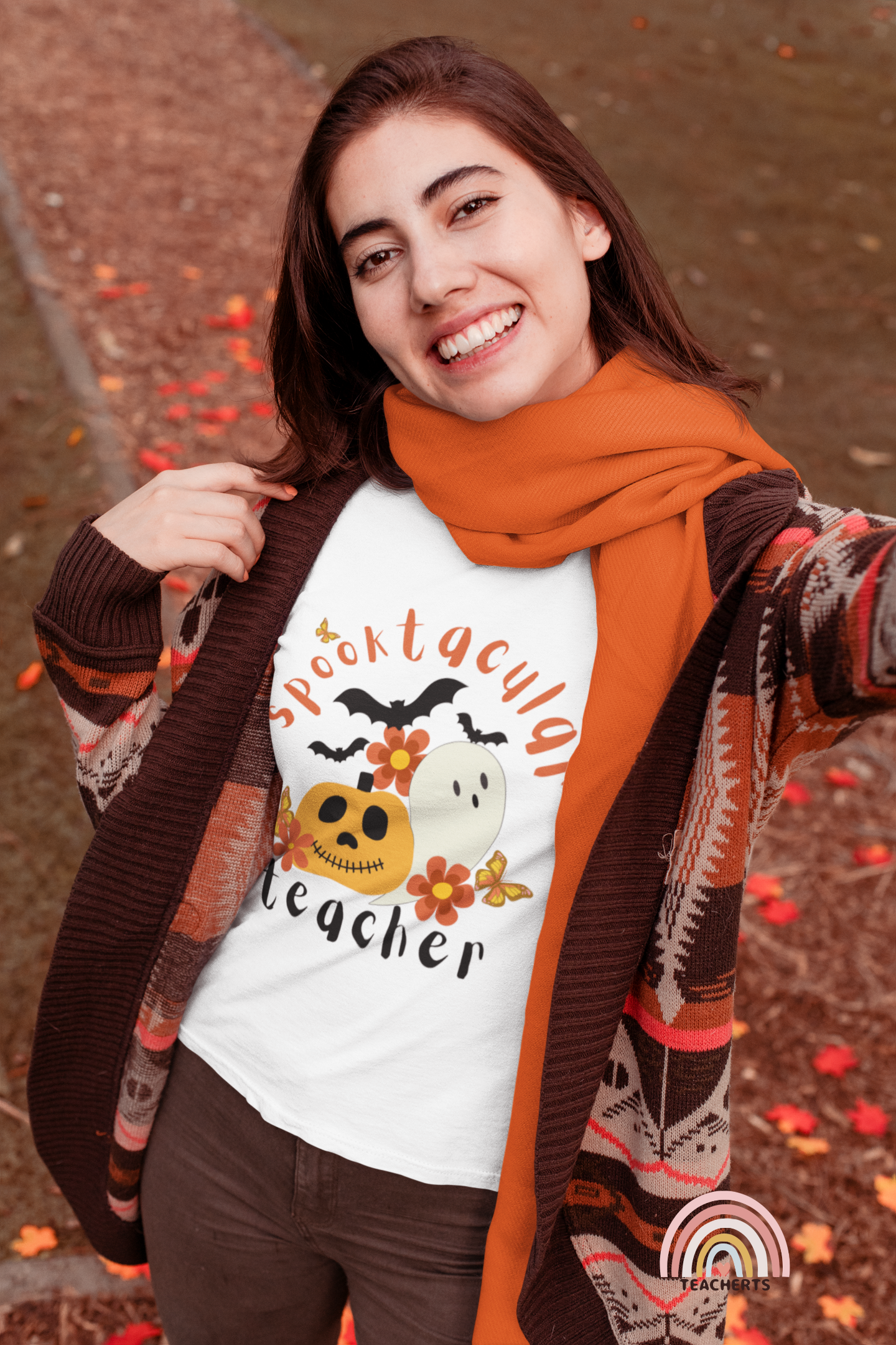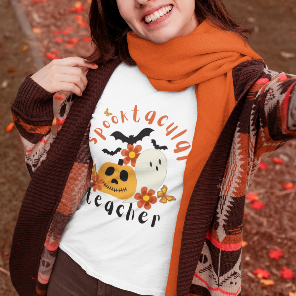 The perfect cute and spooky tee for Halloween! Wear this stylish short sleeve tee on jean day or pair with your favorite pants or skirt for a sophisticated look! Your students will love this fun print and think you are the most spooktacular teacher! Available in white, asphalt gray, yellow, light blue, true royal blue, athletic heather gray and pink for all of your moods.