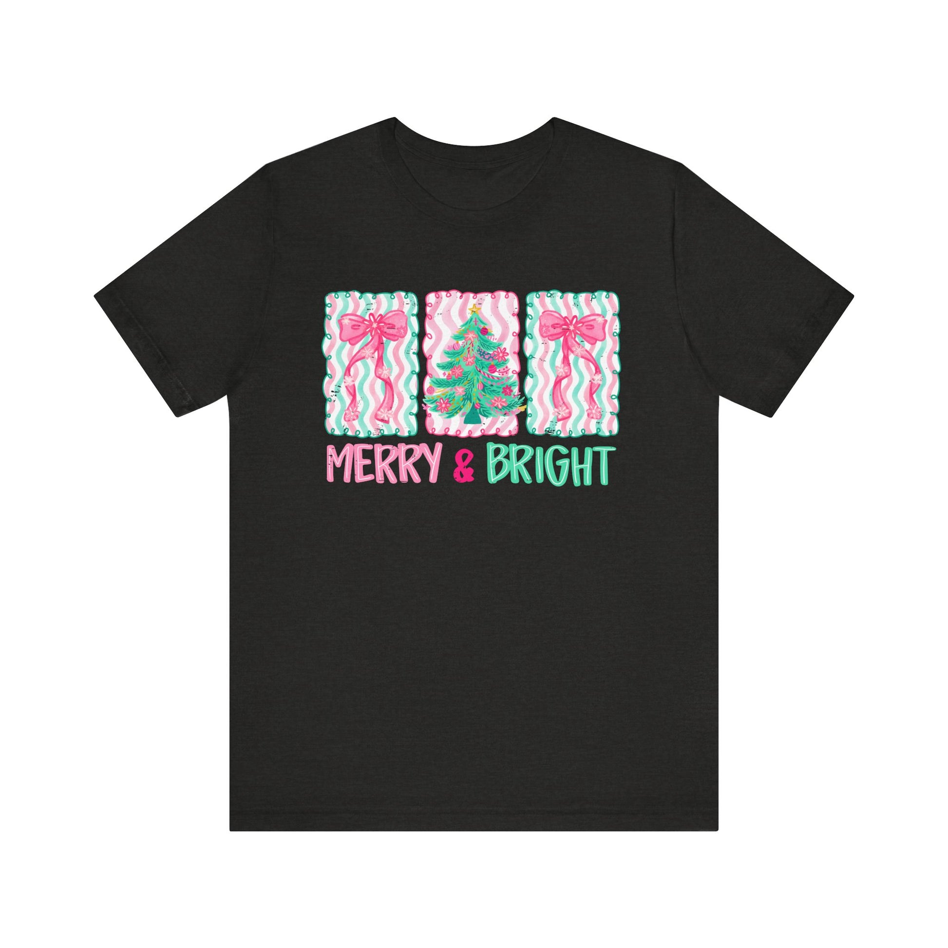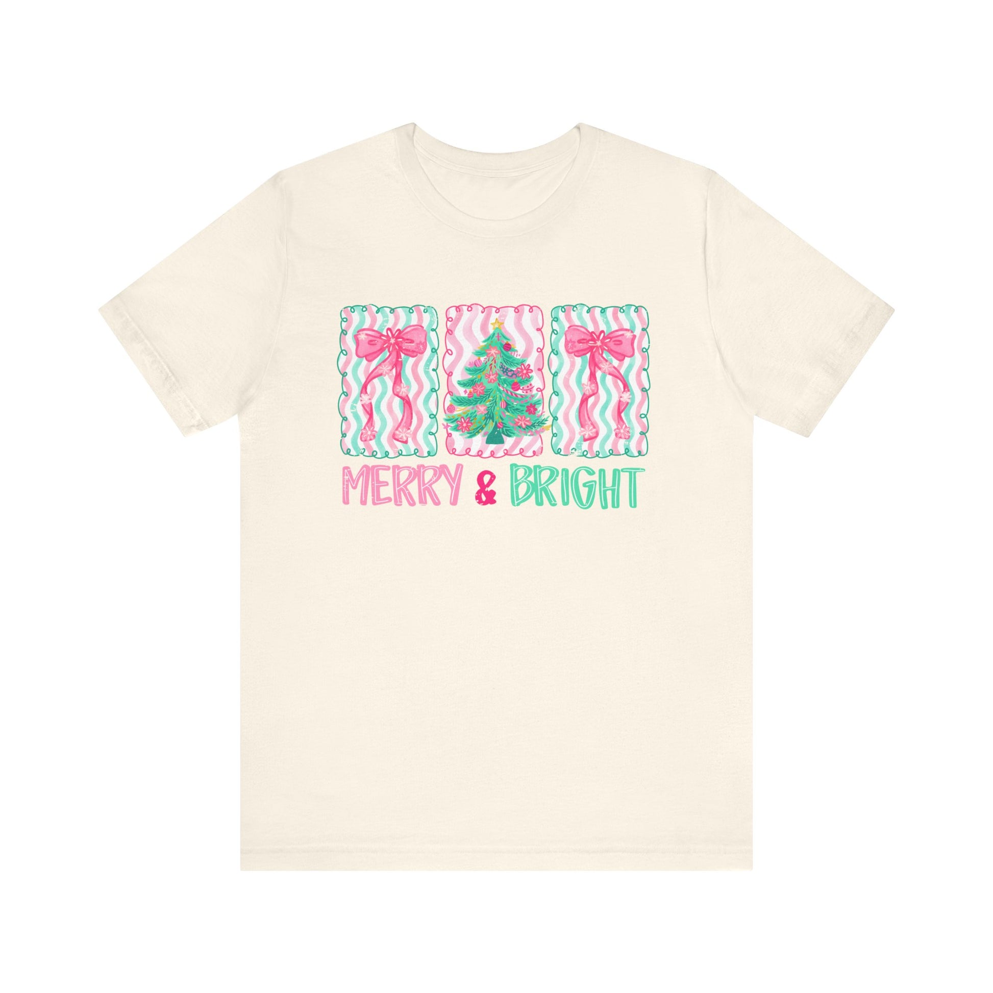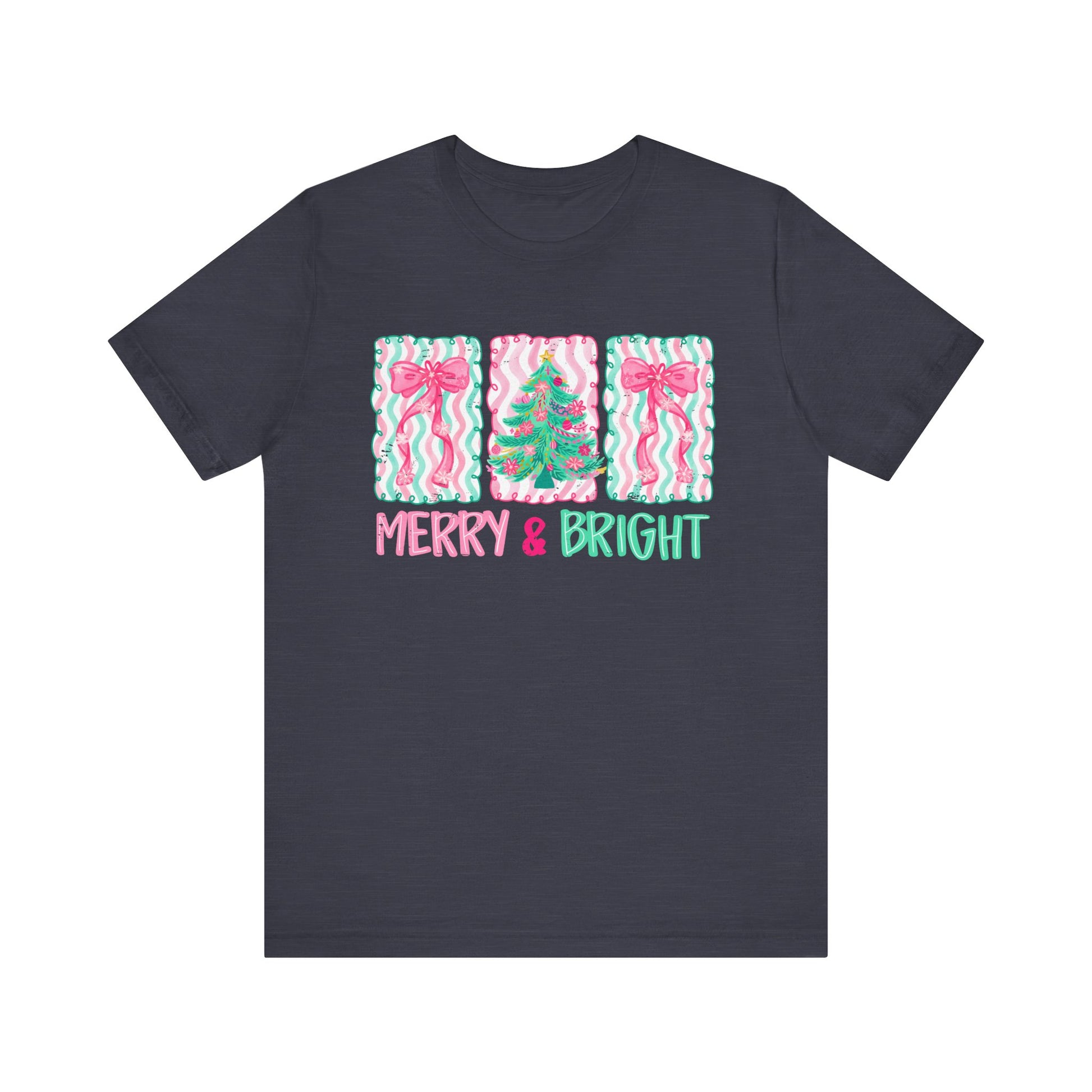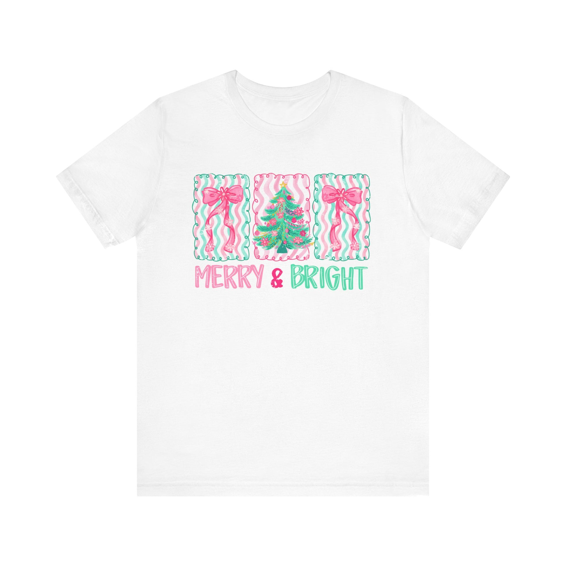 Embrace the festive spirit with our Unisex Jersey Short Sleeve Tee, designed to bring joy and cheer to your holiday celebrations. Featuring a whimsical 'Merry & Bright' design, this tee radiates warmth, making it perfect for gatherings, family photos, or cozy nights by the fire. Its breathable fabric ensures comfort for all-day wear, whether you're decorating the tree or enjoying a winter stroll. Ideal for anyone looking to add a playful touch to their wardrobe, this shirt is a great gift for friends and family during the holiday season. Perfect for Christmas, New Year parties, and festive get-togethers, it’s a must-have for those who celebrate in style!