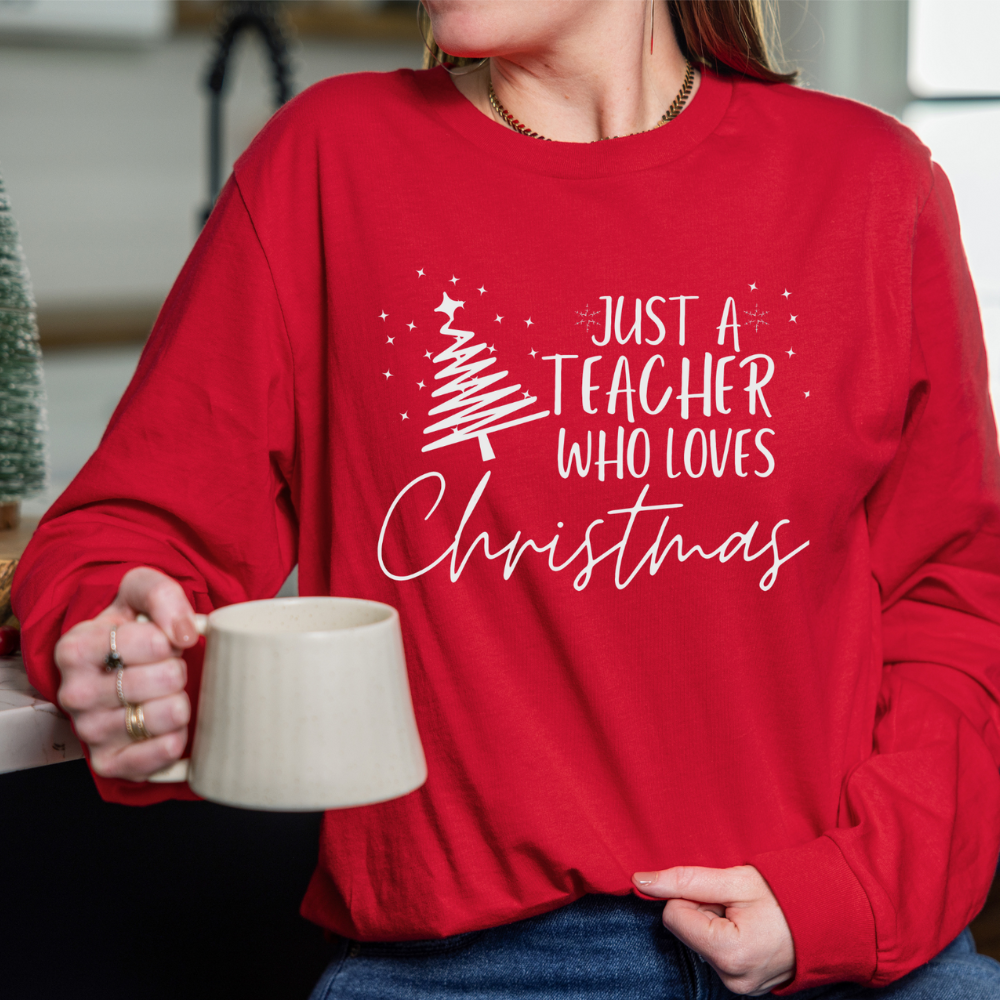 Just a Teacher Who Loves Christmas Unisex Jersey Long Sleeve Tee
