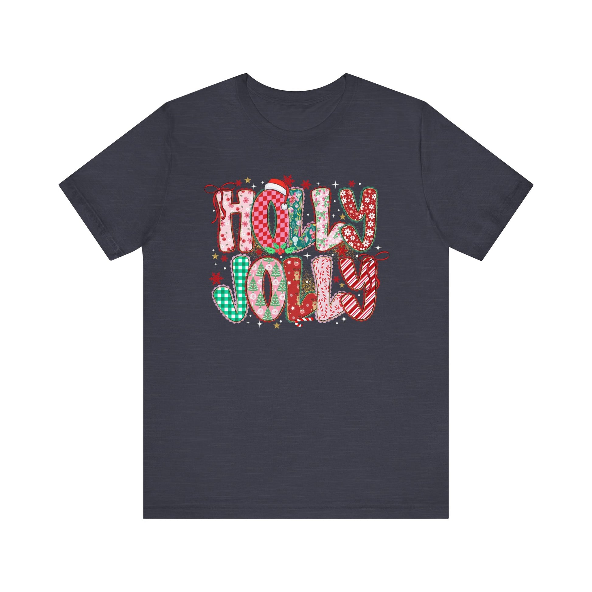 Get into the festive spirit with this charming Unisex Jersey Short Sleeve Tee! The playful 'HOLLY JOLLY' graphic bursts with holiday cheer, making it a perfect addition to your winter wardrobe. Made from lightweight, breathable fabric, this tee is ideal for layering or wearing on its own during holiday gatherings, Christmas parties, or cozy evenings by the fire. Designed for both comfort and style, this shirt suits casual outings, family celebrations, or even as a unique gift for loved ones. Embrace the joy of the season and spread cheer wherever you go!