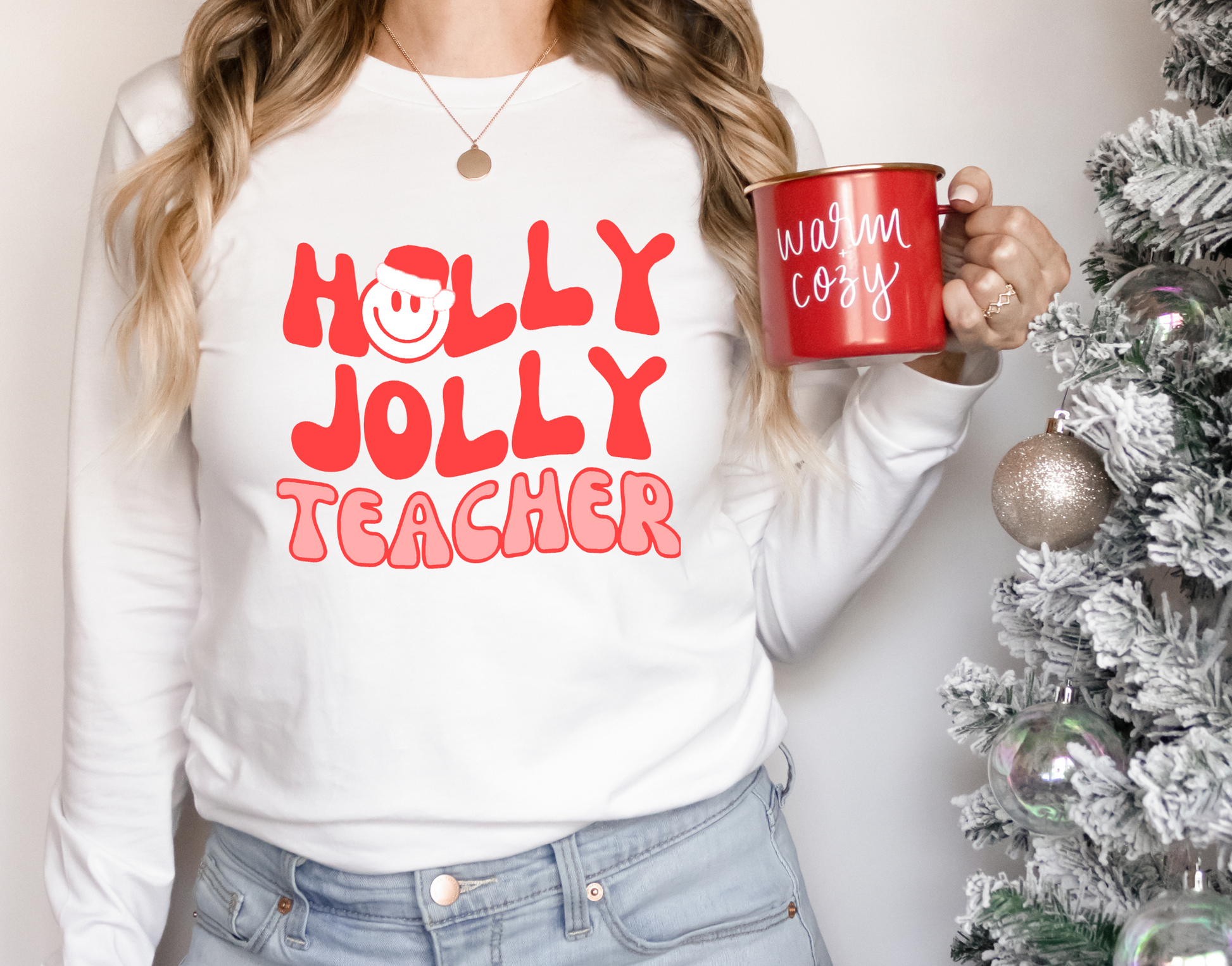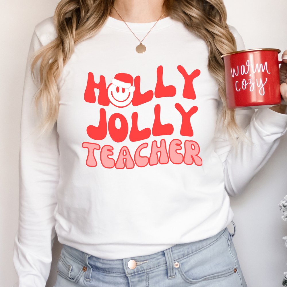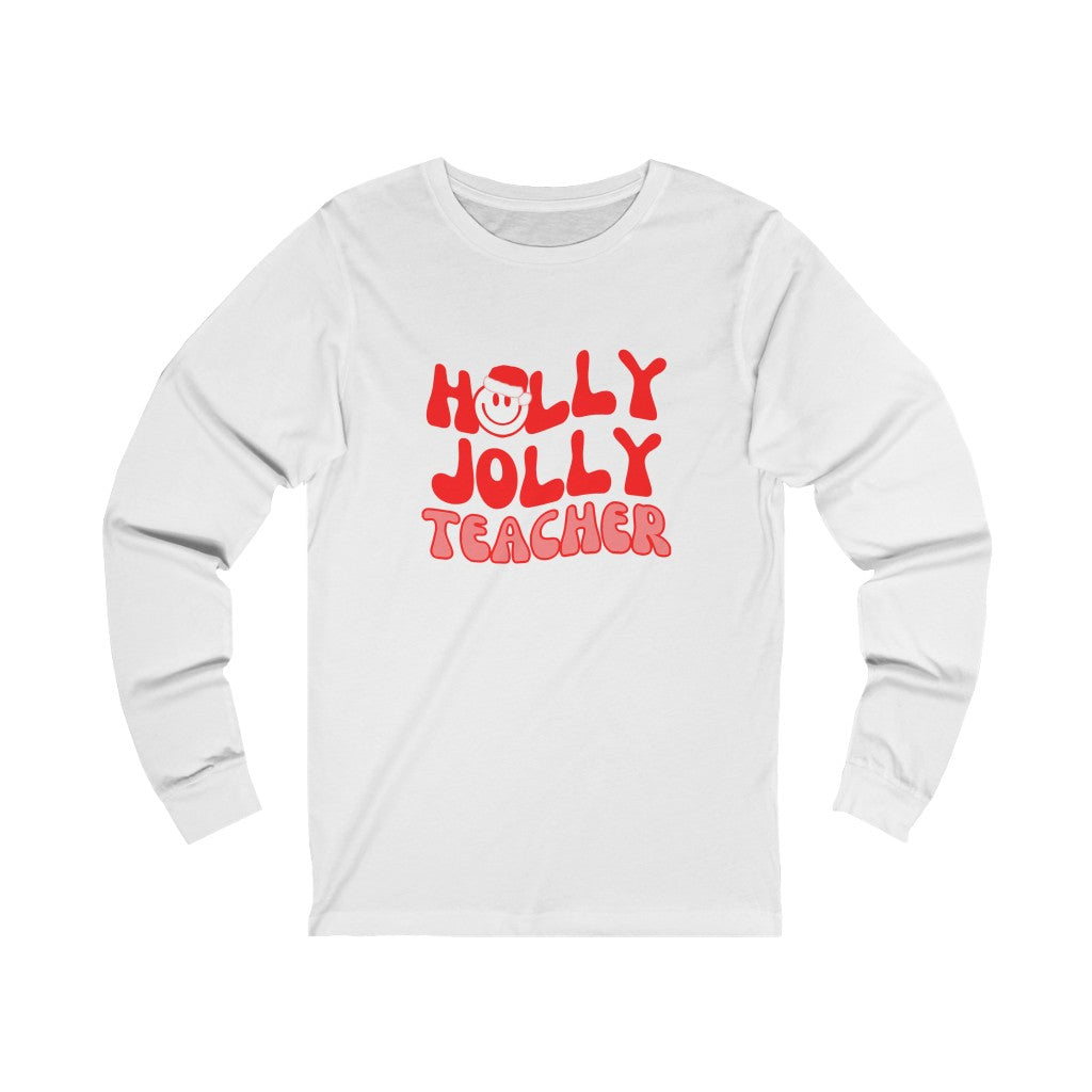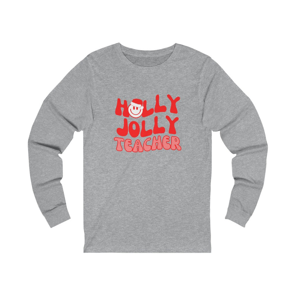 Holly Jolly Teacher Unisex Jersey Long Sleeve Tee